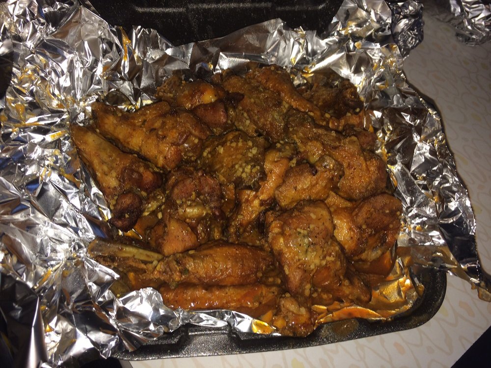 Choice of sauce honey bbq, spicy BBf , hot, mild, or roasted garlic. Served with ranch or blue cheese dressing.