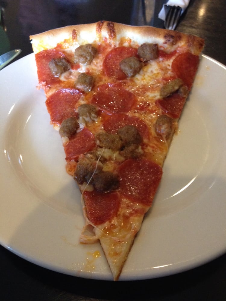 Pepperoni, sausage, green pepper, onion & mushroom.